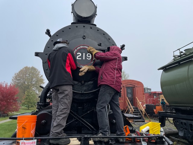 NORMHC and Cambrian College recreate the missing number plate from the #219 T&NO Locomotive in Prescott Park.