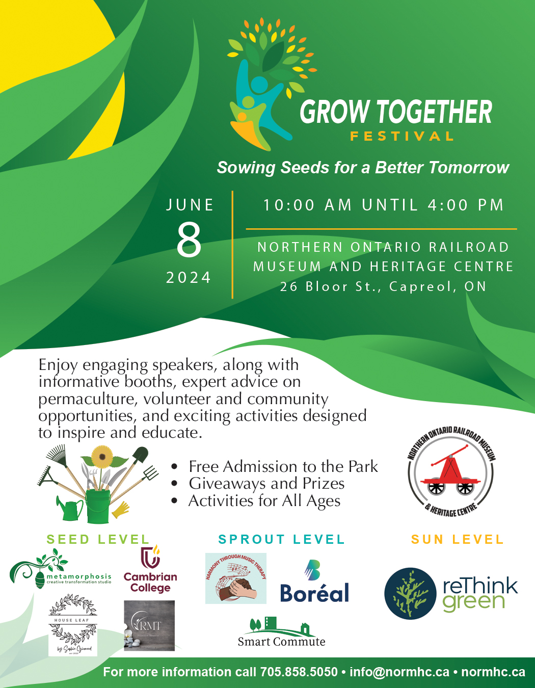 NORMHC partners with ReThink Green to launch the Grow Together Festival, a look at permaculture through the lens of local heritage. Restoration of the 219 Locomotive Tender is completed.